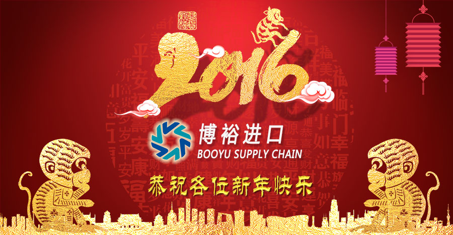 新的一年里,我們將不斷提高產品質量和服務水平,同時也將推出更多新業務和增值服務,與你攜手在新的一年里共創新的輝煌!值此新春佳節來臨之際,我們感謝所有支持和關愛我們的新老客戶對我們的信任和支持,博裕食品進口全體員工在此送上最誠摯的祝福。恭祝大家身體健康、闔家幸福、猴年吉祥、萬事如意!!!