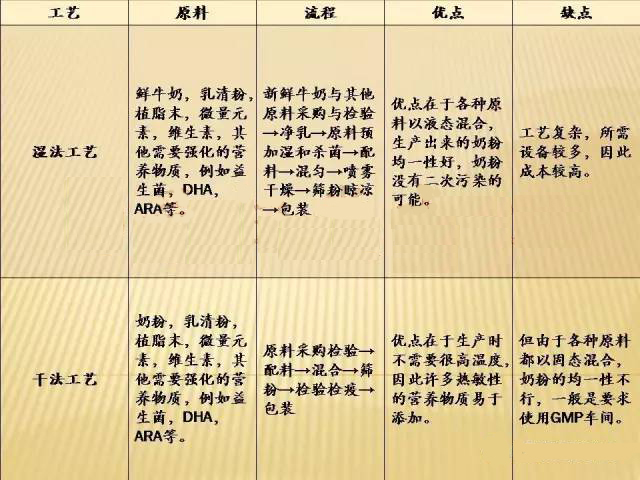 奶粉配料表:如果配料表第一項是"生牛乳或是鮮牛乳",那就是濕法工藝;如果是"全脂奶粉、脫脂奶粉或脫脂乳粉等",就是干法工藝。