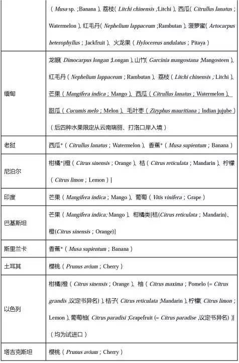 (2) * 已簽訂議定書,但未完成準入程序,目前暫不能進口。