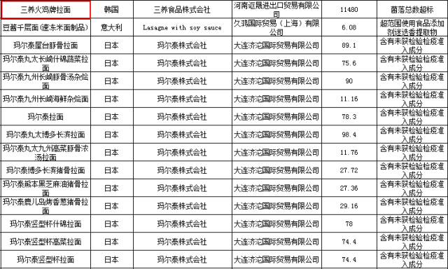 1批次三養(yǎng)火雞牌拉面被檢測出菌落總數(shù)超標(biāo),菌落總數(shù)超標(biāo)意味著致病菌超標(biāo)的機(jī)會增大,增加危害人體健康的幾率。
