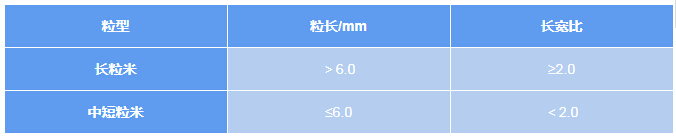 《大米粒型分類判定》(LS/T 6116-2017)將大米分為“長粒米”和“中短粒米”兩種類型,粒型分類要求見下表。